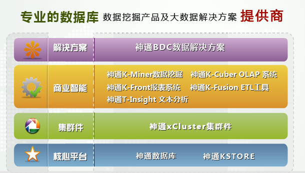 神舟通用公司主營業(yè)務(wù)主要包括神通關(guān)系型通用數(shù)據(jù)庫、神通KStore海量數(shù)據(jù)管理系統(tǒng)、神通xCluster集群件、神通商業(yè)智能套件等系列產(chǎn)品研發(fā)和市場銷售;诋a(chǎn)品組合,可形成支持交易處理、MPP數(shù)據(jù)庫集群、數(shù)據(jù)分析與處理等解決方案。公司擁有40余名實戰(zhàn)經(jīng)驗豐富的中高級數(shù)據(jù)庫技術(shù)服務(wù)人員,可提供數(shù)據(jù)庫系統(tǒng)調(diào)優(yōu)和運維服務(wù)。公司客戶主要覆蓋政府、電信、能源、交通、網(wǎng)安、國防和軍工等領(lǐng)域,率先實現(xiàn)國產(chǎn)數(shù)據(jù)庫在電信行業(yè)的大規(guī)模商用。