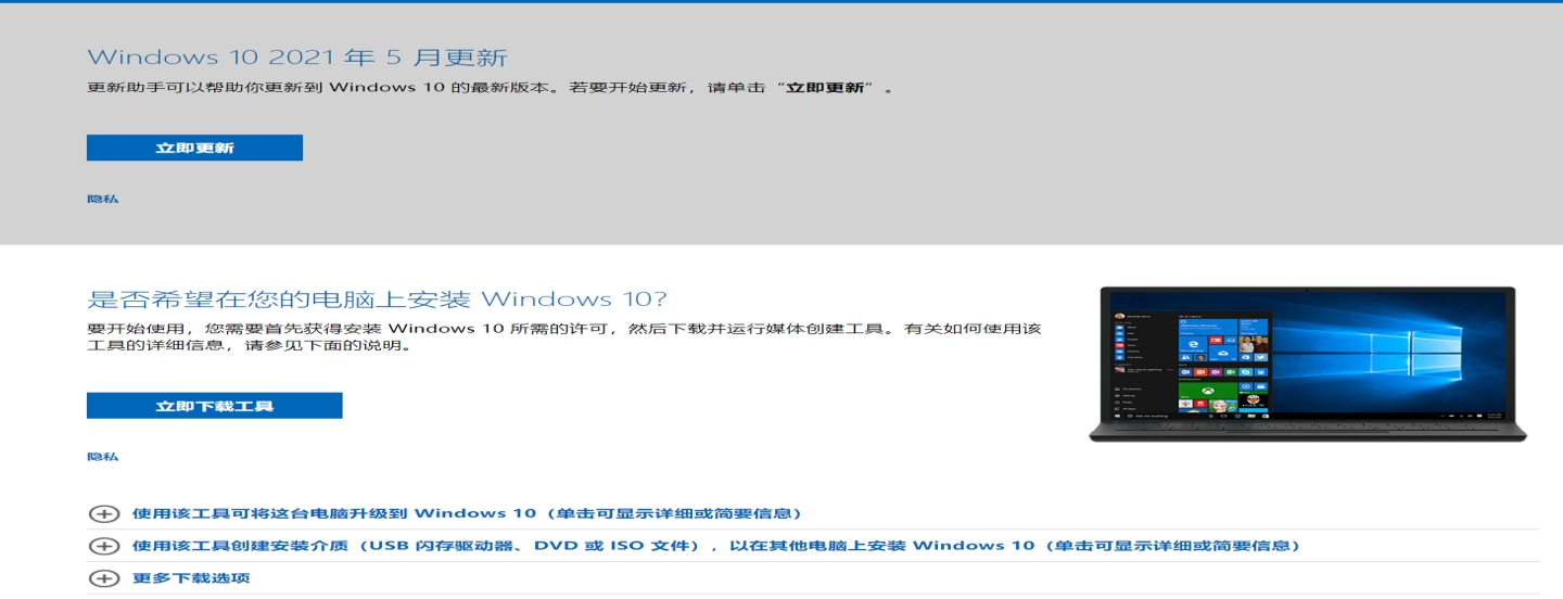 更新助手可以幫助你更新到 Windows 10 的最新版本。若要開始更新,請單擊“立即更新”。(需要注意:微軟會驗證兼容性,如顯示無法安裝,不可強制升級)
